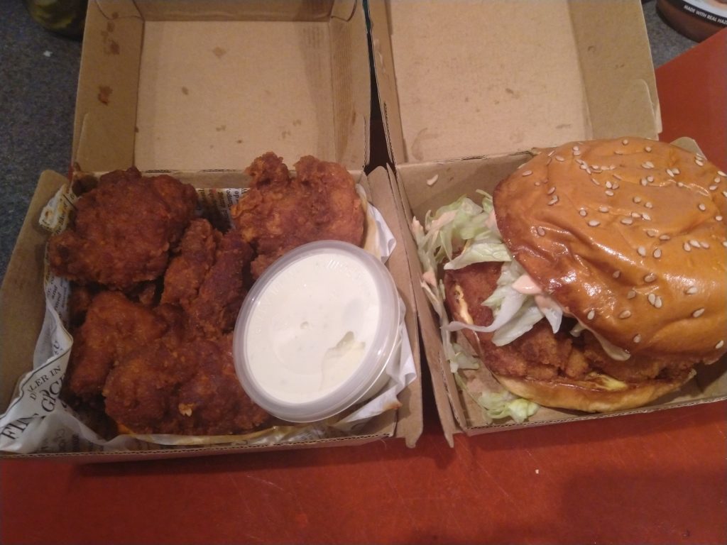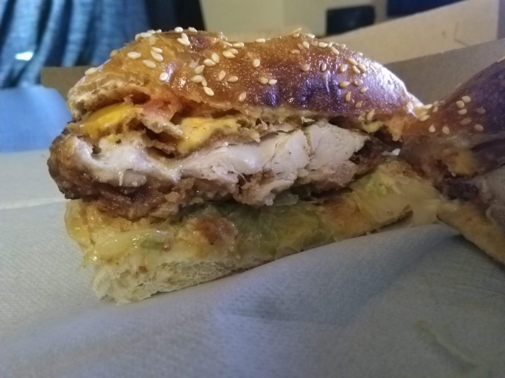 The McDonalds Big Mac, but with chicken. This is too much chicken, also it doesn’t use Big Mac sauce, and it also needed more sauce. Also the cheese seemed out of place. It wasn’t bad, it was just too much.